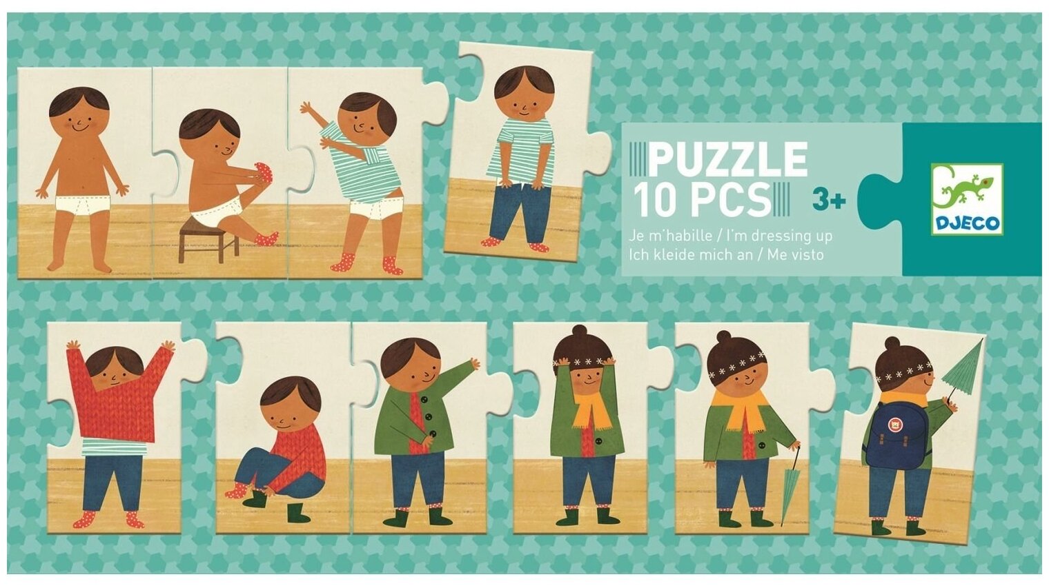Пазл ТРИО Я одеваюсь от французского производителя Djeco – это головоломка, в которой ребенку предстоит восстановить этапы одевания. Подбирая необходимые пазлы по цветам и изображенным деталям, дети учатся мыслить логически, развивается память и внимание, а также мелкая моторика. Детали пазла изготовлены из высококачественного многослойного картона, они не деформируются и удобны для маленьких детских ручек. Игрушки фирмы Djeco носят образовательный и развлекательный характер, развивают воображение и художественный вкус. Вся выпускаемая продукция отвечает высоким стандартам качества и безопасна для здоровья детей.