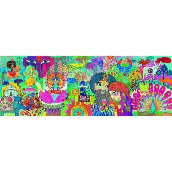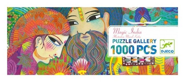Пазлы от Djeco - это настоящие картины, завораживающие своей красотой и необычными сюжетами. Прекрасный подарок не только детям, но и всем любителям и коллекционерам мозаичных изображений. Из 1000 деталей ребенок с интересом будет составлять большую и красивую горизонтальную картину с изображением ярких и красочных индийских мотивов. Картинка выполнена в насыщенных ярких цветах, конечный результат больше похож на настоящее произведение искусства, чем на головоломку. Собрав весь пазл можно увидеть буйство цвета, как на индийском фестивале красок. Такой пазл непременно принесет много положительных эмоций в процессе сборки и будет радовать собранной картинкой. Собранный пазл можно вставить в рамку и украсить им детскую комнату. Пазл от Djeco можно собирать всей семьей, помогая друг другу искать подходящие детали. Пазлы развивают интеллектуальные способности ребенка в любом возрасте. Собирая мозайку, ребенок развивает воображение, внимание, память. Игра с пазлами формирует усидчивость, терпение и целеустремленность в достижении конечной цели. Яркие краски, разнообразие деталей делает процесс сбора пазла особенно приятным, независимо от возраста игроков. Размер собранного пазла 97 х 33 см. В пазле 1000 деталей.