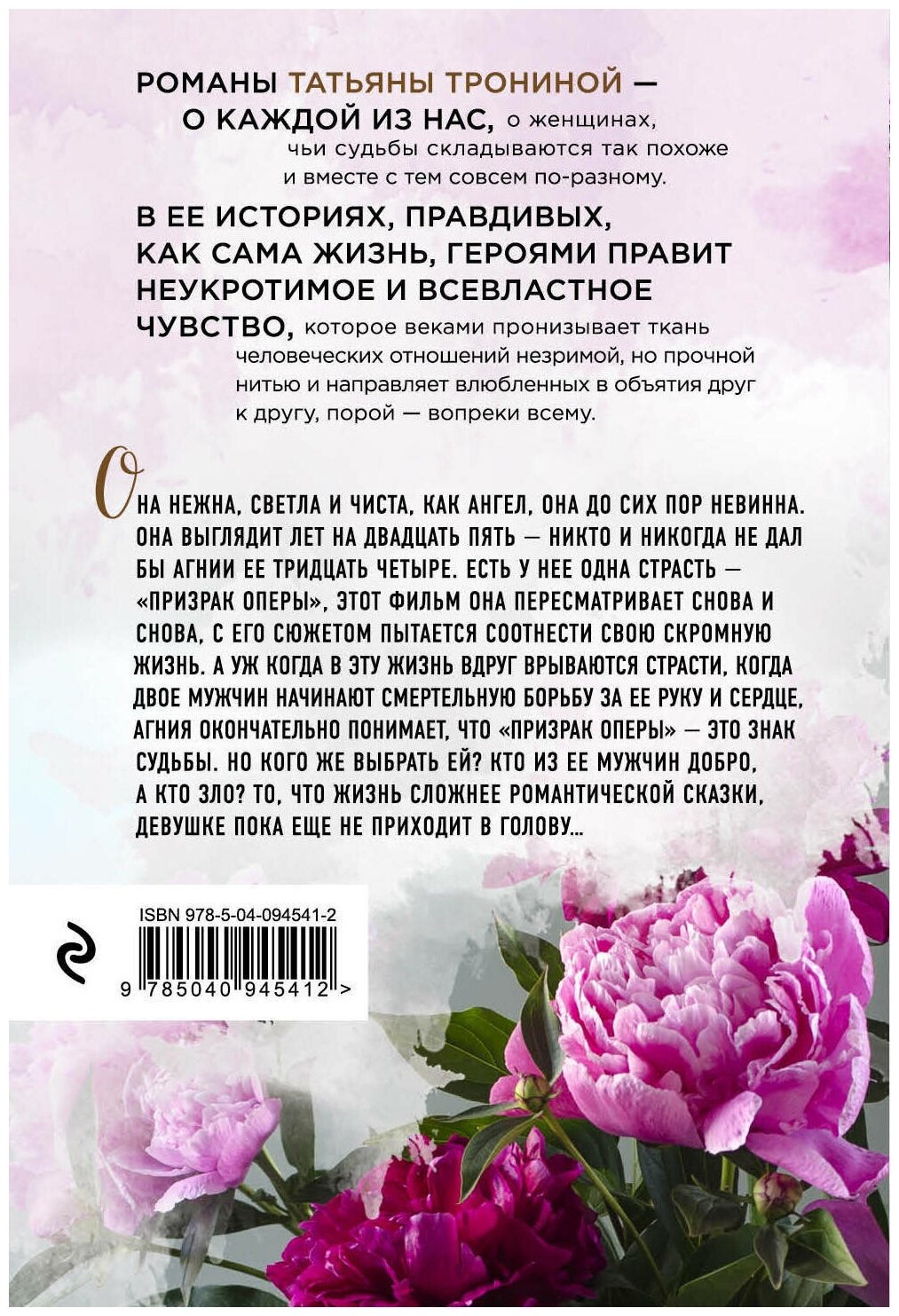 Она нежна, светла и чиста, как ангел, она до сих пор невинна. Она выглядит лет на двадцать пять – никто и никогда не дал бы Агнии ее тридцать четыре. Есть у нее одна страсть – "Призрак Оперы", этот фильм она пересматривает снова и снова, с его сюжетом пытается соотнести свою скромную жизнь. А уж когда в эту жизнь вдруг врываются страсти, когда двое мужчин начинают смертельную борьбу за ее руку и сердце, Агния окончательно понимает, что "Призрак Оперы" – это знак судьбы. Но кого же выбрать ей? Кто из ее мужчин добро, а кто зло? То, что жизнь сложнее романтической сказки, девушке пока еще не приходит в голову…