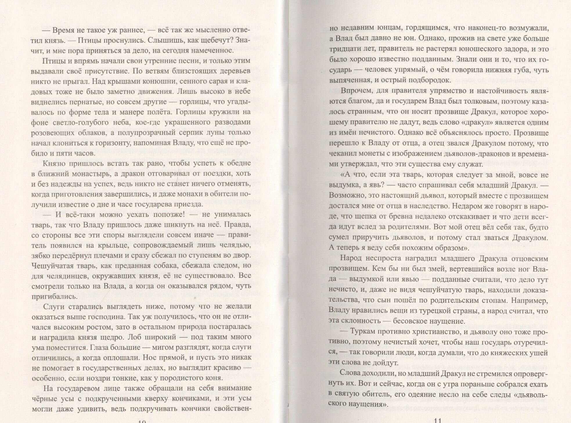Книга довольно обьемная, шрифт мелкий, иллюстраций нет, серая бумага. Наверное от содержания ожидала большего. В книге нет ничего кровавого, кровопролитных сцен сражений, нет страшных вампиров, нет жестоких и злых османов. В книге рассказывается о детстве и взрослении Влада третьего. О его отце, матери, старшем брате Мирче. Я не историк, и с точки зрения достоверности исторических фактов не скажу ничего. Для любителей исторического чтива я думаю будет интересно.