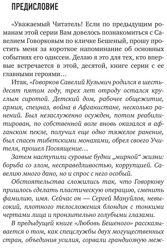 Савелий Говорков отомстил за смерть друга, но покой по-прежнему ему только снится. На этот раз герой станет центральной фигурой в настоящей войне против сил Зла. Подготовка к войне на стороне Добра будет тяжелой - Бешеному придется выследить врага, разгадать загадку "голубого глаза" и даже отправиться на другой конец мира. В войне, как известно, хороши все средства, и Говоркову предстоит выяснить, как далеко он сможет зайти и чем готов пожертвовать, чтобы одолеть Зло. Одной из серьёзных преград станет Велихов. Он снова появляется на сцене и хочет только одного - уничтожить Савелия Говоркова. Сможет ли Бешеный выстоять и одержать победу в войне Добра со Злом?