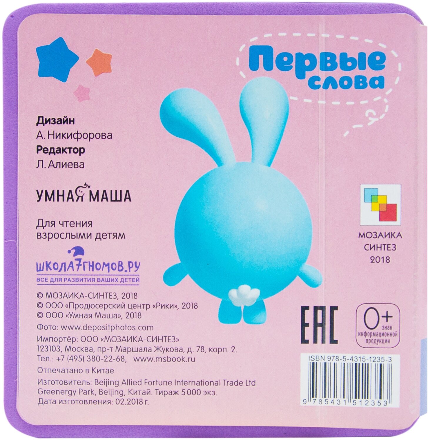 Эта разноцветная книжка-плюшка из серии «Первые слова Малышариков» создана для развития речи и мышления самых маленьких детей.