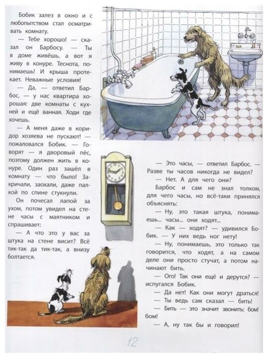 Книга великолепная. Красивый форзац и обложка книги. Она большая, нарядная с яркими иллюстрациями, причём к каждому абзацу своя иллюстрация. Пока читаешь абзац, девчонки (им уже 4 года) слушают и разглядывают картинки. .В ней шесть рассказов все разные, но особенно хорош "Бобик в гостях у Барбоса". Я сама с удовольствием ещё раз перечитала. Эта книга может послужить прекрасным подарком.
