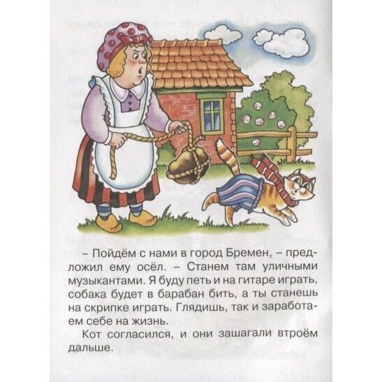 Эта книжка небольшая и тоненькая, при этом и цена на неё низкая. Это замечательная сказка о животных, которые благодаря своему уму смогли достичь желаемого и справились со всеми трудностями на своём пути. Сказка учит детей быть находчивыми и умными. И не в одиночку, а только объединившись, можно справиться даже с самыми страшными врагами. В этой сказке молодец осёл, поскольку он не растерялся и собрал команду, благодаря чему звери и смогли очень хорошо устроиться в жизни.