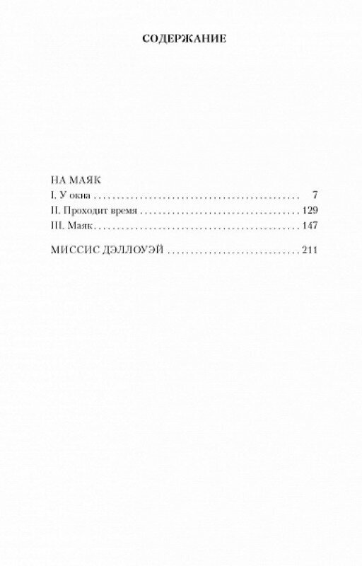 В настоящий сборник вошли два наиболее ярких романа писательницы: «На маяк» и «Миссис Дэллоуэй». Мир этих романов словно соткан из мелочей, пустяков, взглядов, жестов, деталей — в нем неуловимо слиты прошлое и настоящее, "здесь и там", потому что это мир чувства, и именно чувство, а не сухая логика определяет, что важно, а что нет, превращая момент в вечность, а пустяк в событие.