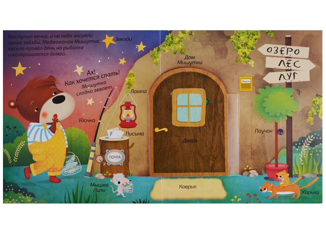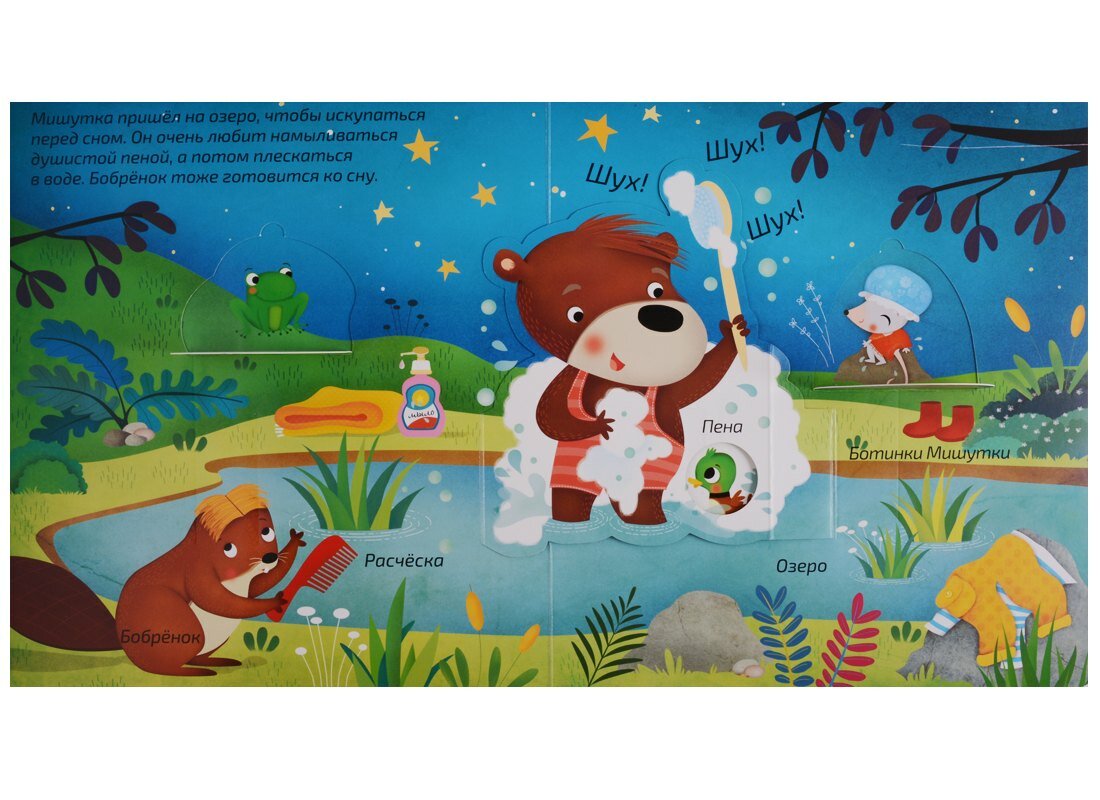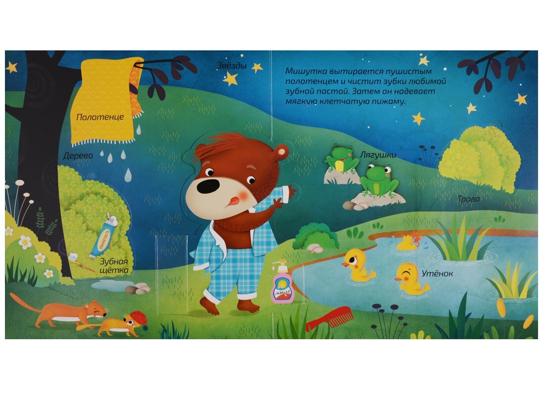 Красивые образные иллюстрации, мини-истории и подписи к ним познакомят малыша с темой сна, как правильно готовиться ко сну, и помогут пополнить словарный запас.