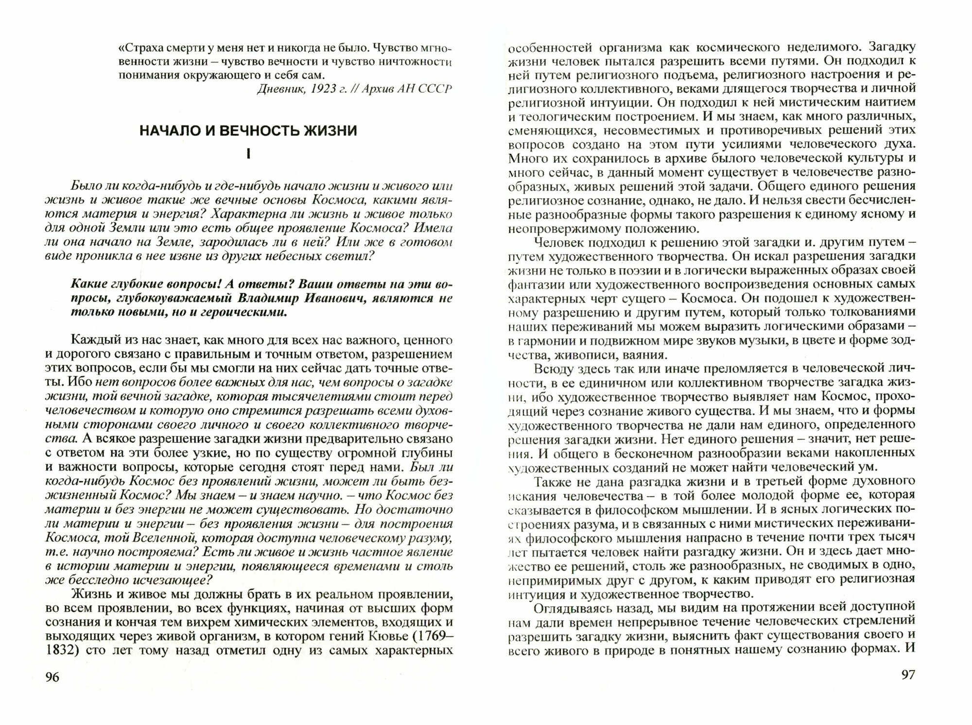 В данном томе представлены фрагменты работ великого русского мыслителя В.И.Вернадского, одного из известнейших ученых ХХ века. Человек, как и все живое, находится в непосредственной зависимости от окружающей среды, так как сам является природным объектом. будучи частью непрерывного круговорота, существующего миллиарды лет, он осознал, что должен мыслить и действовать в планетном аспекте. В так называемой ноосфере человек становится крупнейшей геологической силой. Своим трудом и мыслью он способен перекраивать действительность и творить. Ученый затрагивает и важнейшую тему воспитания лучшего человека, являющую собой безбрежную область, которую необходимо старательно изучать, по крупицам собирая новые факты и вычленяя зерно знания. Видеть взаимосвязь между всеми фактами возможно лишь при ясном, определенном предмете изучения, а именно: с помощью строго научного изучения, ведь настоящая сила человека заключается в духе его, который должен постоянно расти и стремиться вперед.