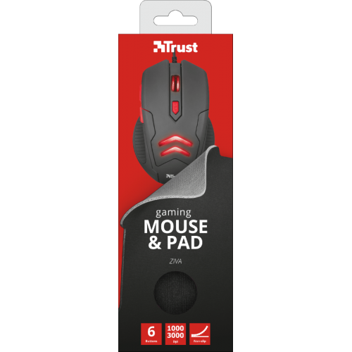 Мышь проводная + коврик Trust Ziva Black/Red