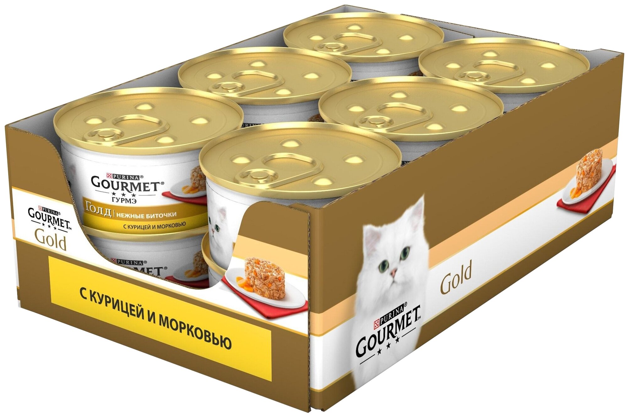 Влажный корм для кошек Гурмэ Корм для кошек Gourmet Gold нежные биточки курица морковь