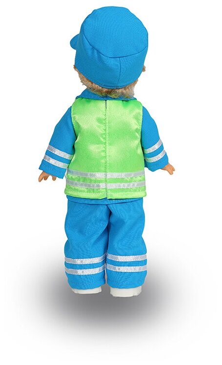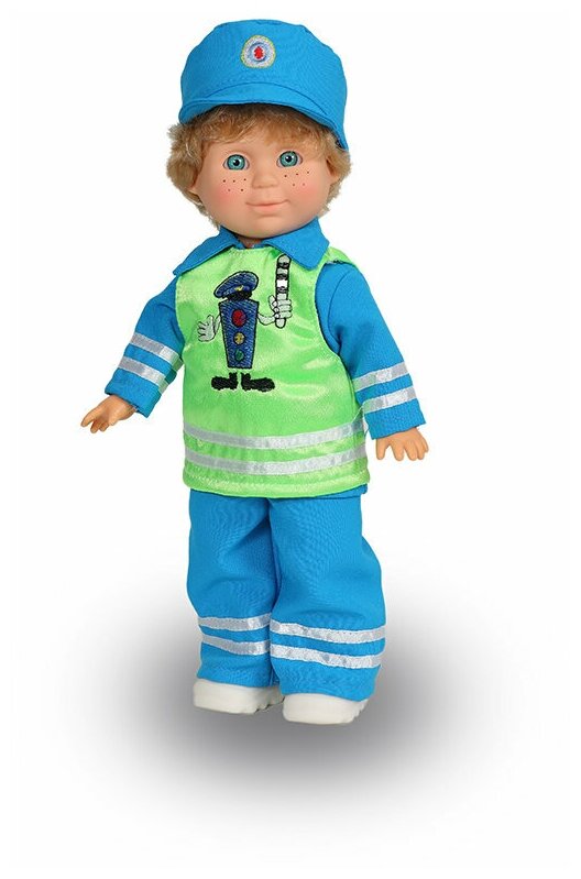 Постовой по имени Митя представляет собой куклу серии Профи от торговой марки Весна , одетую в специальную униформу - костюм и жилет, а также в кепочку. Мите предстоит следить за порядком на дорогах, а также при необходимости управлять движением многочисленных автомобилей. Кукла имеет встроенный звуковой модуль, а потому Митя может произносить несколько фраз. Внимание! Позиция ассортиментная, цена указана за одну игрушку. Возможности выбора определенной игрушки нет!