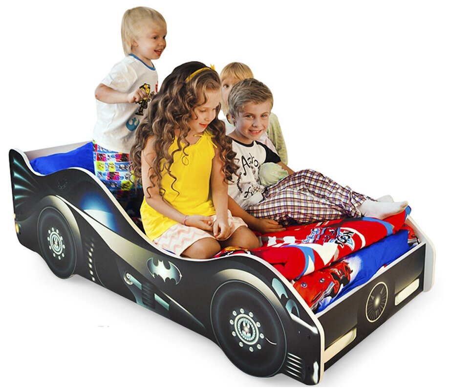 Яркий стильный Бэтмобиль придется по вкусу как мальчишкам, так и крутым девчонкам. Кровать-машинку можно дополнительно оборудовать подсветкой, которая будет выполнять функцию ночника, при этом добавляя дизайну оригинальности. Кроме того, на нашем сайте вы найдете удобные ортопедические матрасы, идеально подходящие к кроваткам, а также качественное постельное белье. В производстве кроваток используются только экологичные материалы, такие, как дерево и ЛДСП класса Е1, который одобрен государственным стандартом для применения в изготовлении детской мебели. Кроме того, все торцы оклеены защитной кромкой. Изображение нанесено методом ультрафиолетовой печати, которая не только абсолютно безвредна для здоровья, но и обладает неограниченным сроком эксплуатации, устойчива к использованию моющих средств, а также к воздействию солнечных лучей. Для того, чтобы собрать Бэтмобиль, привлеките ребенка, это доставит ему невероятное удовольствие, и он будет горд, что смог оказать помощь.