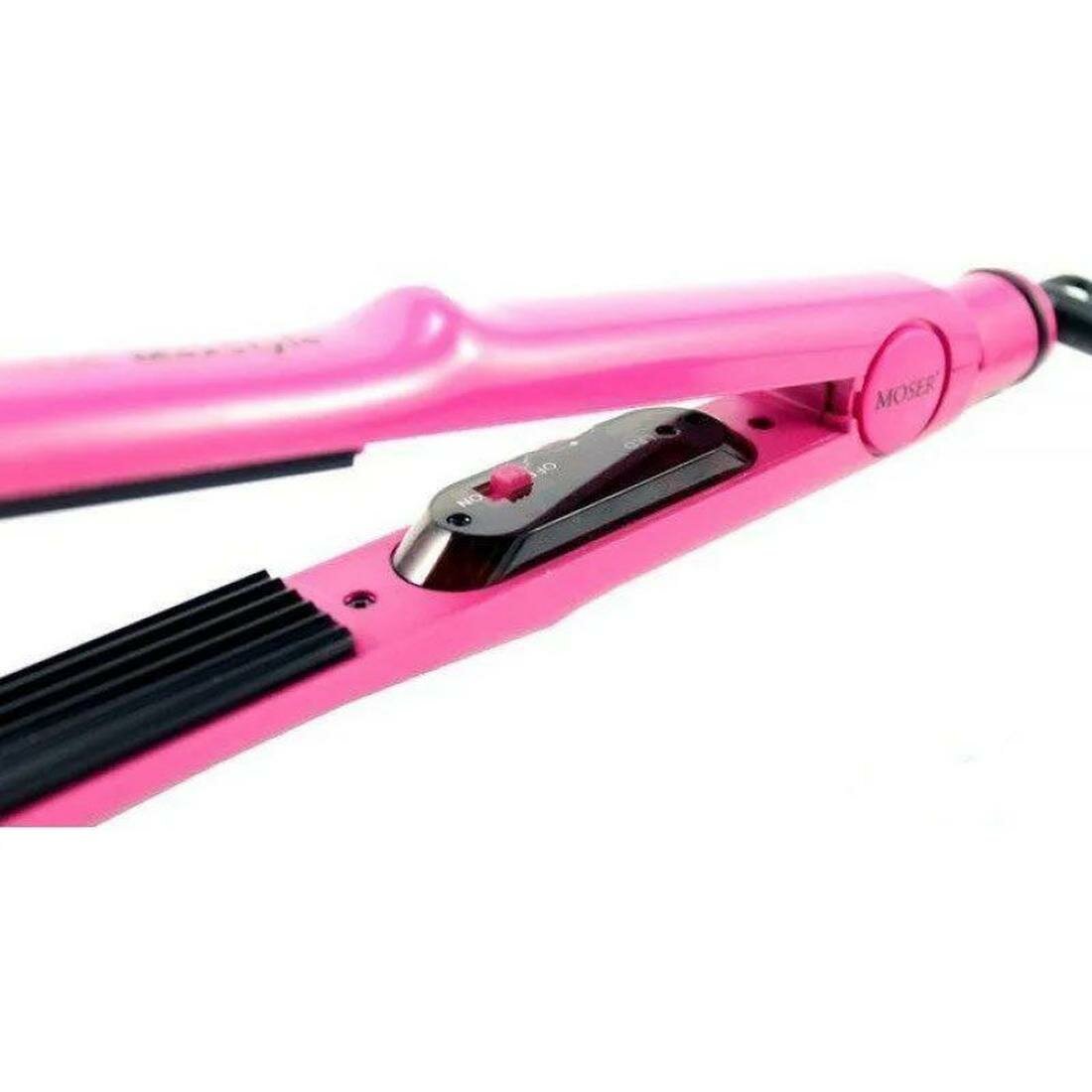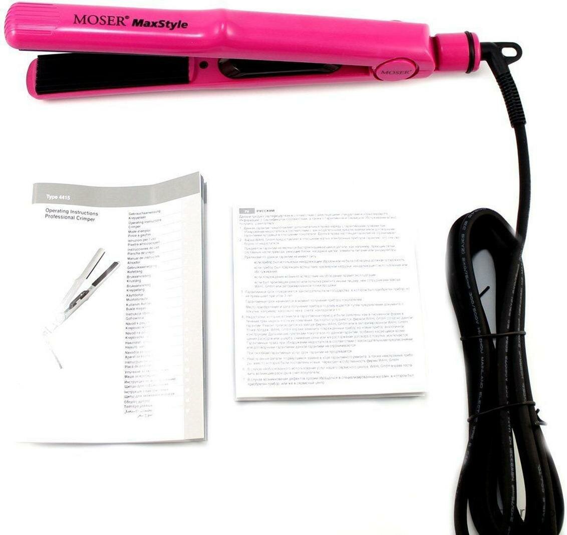 Щипцы для завивки волос Moser Crimper MaxStyle имеют стильный синий цвет, и способны украсить собой любой интерьер. Помимо визуального впечатления, устройство способно помочь вам создать великолепные прически, благодаря высочайшему качеству исполнения и соответствию профессиональному классу техники. Щипцы оборудованы керамическими пластинами-гофре, ширина и длина которых равны 25 и 90 мм соответственно. В зависимости от текущей задачи вы сможете регулировать рабочую температуру прибора: она может изменяться от 150 до 230 °C. Мощности щипцов, равной 40 Вт, достаточно для обеспечения высокой скорости нагрева: пластины нагреваются лишь за 30 с.