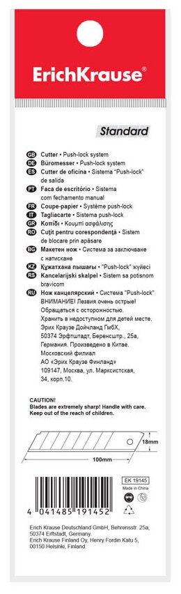На сегодняшний день товар «Нож канцелярский длина: 18 мм Erich Krause Standart (19145)» можно купить с кешбеком в 1 магазине: Яндекс.Маркет