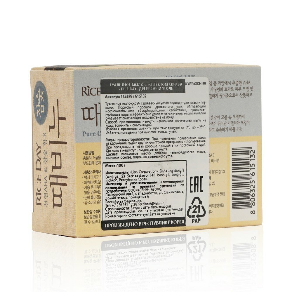 Скраб-мыло CJ Lion древесный уголь туалетное Rice Day 100 гр (8806325-615132)