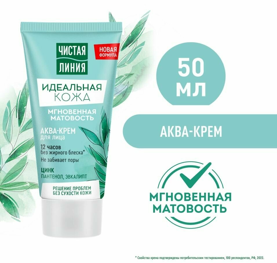 Аква-крем Чистая линия Мгновенная матовость Идеальная кожа 50 мл (11-8-65500102)