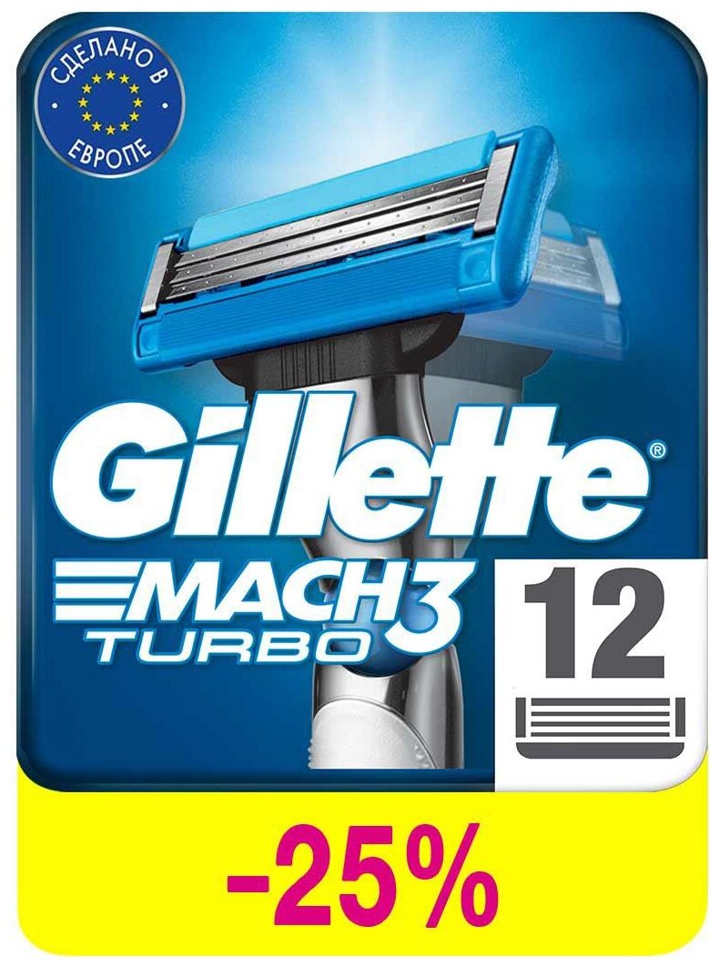 Наиболее чистое и комфортное бритье, предоставляемое бритвенной системой с тройным лезвием с алмазоподобным покрытием. На кассете Gillette Mach3 Turbo есть микрогребень из мягких и эластичных пластинок, расположенных непосредственно перед тройным лезвием. Нежно натягивая кожу, микрогребень подготавливает волоски к чистому и комфортному бритью. Смазывающая полоска Indikator содержит витамин Е и алоэ, когда она поблекнет желательно поменять кассету для лучшего результата бритья. Три лезвия специально установлены на разных уровнях таким образом, чтобы брить еще чище всего одним движением.