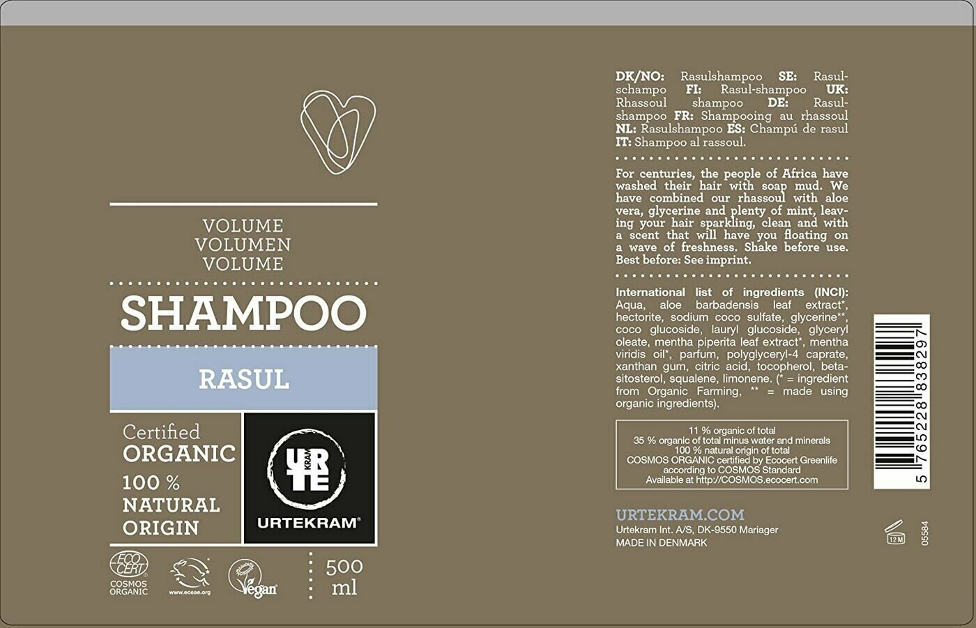 Шампунь Urtekram объем для жирных волос с вулканической глиной Рассул 250 мл (2205)