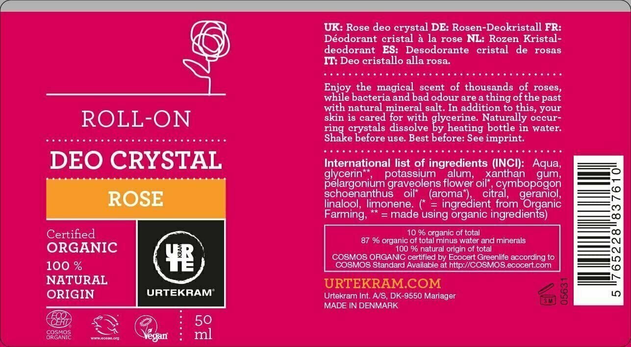 Дезодорант Urtekram шариковый-кристалл Роза 50 мл (3399)