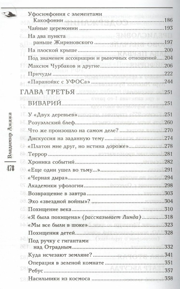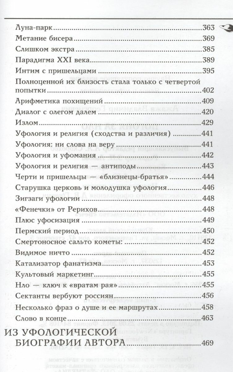 Истории о зарубежных поездках автора на всякие конференции по теме НЛО и о встречах с разными иностранными звездами от уфологии перемежаются пересказами и перепечатками писем о проявлениях НЛО, особенно увлекся автор проблемой похищения людей (этот раздел в конце книги). Ничего не могу сказать за и против, я пропускала эти страницы, мне было не интересно. Пожалуй, отмечу только любопытный рассказ о т. н. Розуэлльском инциденте.