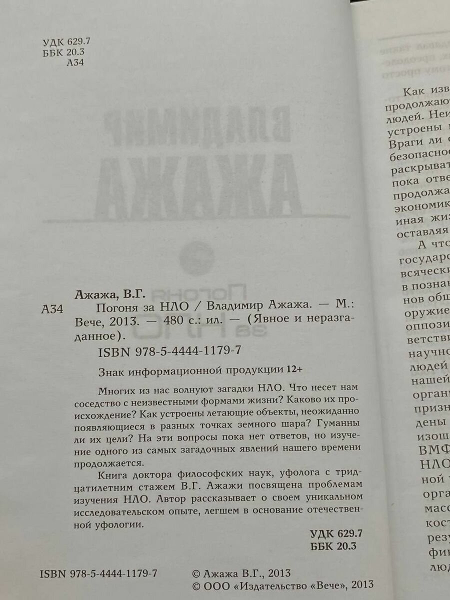 Книга: Погоня за НЛО (Ажажа Владимир Георгиевич); Вече, 2017