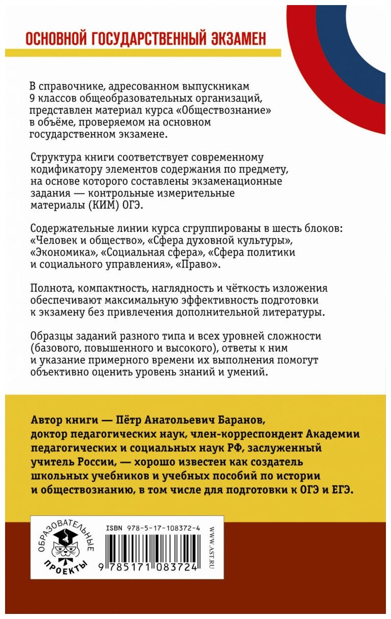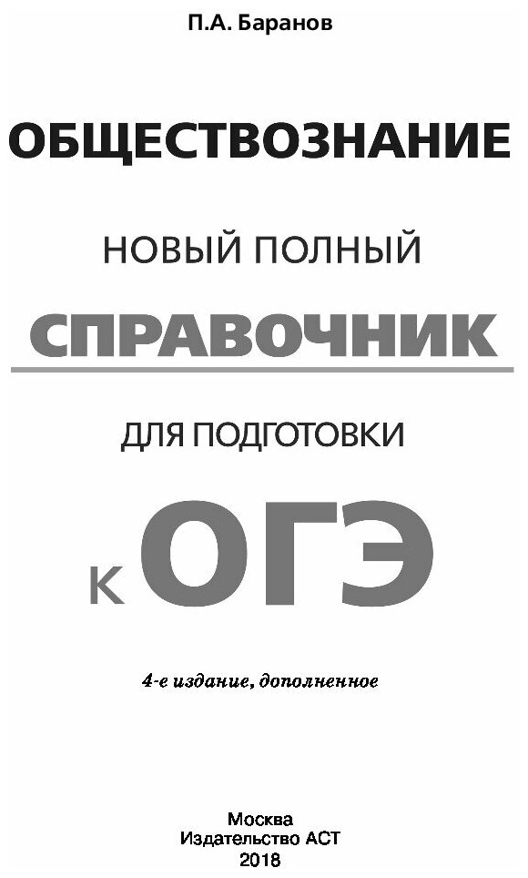 ОГЭ. Обществознание. Новый полный справочник для подготовки к ОГЭ (Баранов Петр Анатольевич, Шевченко Сергей Владимирович, Воронцов Александр Викторович); АСТ, Образовательные проекты, 2018