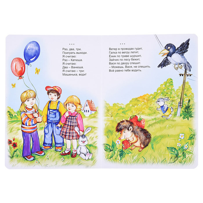 Хорошая книга за небольшую цену. Красивые яркие иллюстрации соответствуют тексту. Складные считалочки, легко читаются и запоминаются. Книга формата А-5, из плотного картона, для самых маленьких очень хорошо, можно не боятся, что порвут. Детям книга понравилась, есть уже свои любимые считалочки, на которые показывают и просят прочитать снова и снова