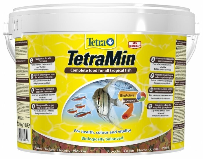 ТетраМин — тщательно подобранная смесь высокопитательных функциональных ингредиентов, витаминов, минералов и микроэлементов для ежедневного полноценного питания рыб. Смесь семи разных видов хлопьев из более чем 40 видов высококачественного сырья. Исключительное свойство хлопьев плавать и медленно погружаться в воду обеспечивает оптимальное поглощение корма разными видами рыб. Запатентованная БиоАктив-формула* поддерживает работоспособность иммунной системы, обеспечивая высокую продолжительность жизни. Содержит пребиотики для улучшенного функционирования организма и усвоения питательных веществ. Отлично принимается всеми видами декоративных рыб. Для здоровья рыб и чистой воды. Для того чтобы разнообразить рацион питания рыб, используйте корма ТетраРубин, ТетраФилл и ФрешДелика. Несколько раз в день небольшими порциями. Примечание: * EP 0848592, * При правильном использовании, новый TetraMin существенно лучше переваривается и уменьшает выделения рыб (в сравнении с предыдущим кормом TetraMin) - гарантия производителя.