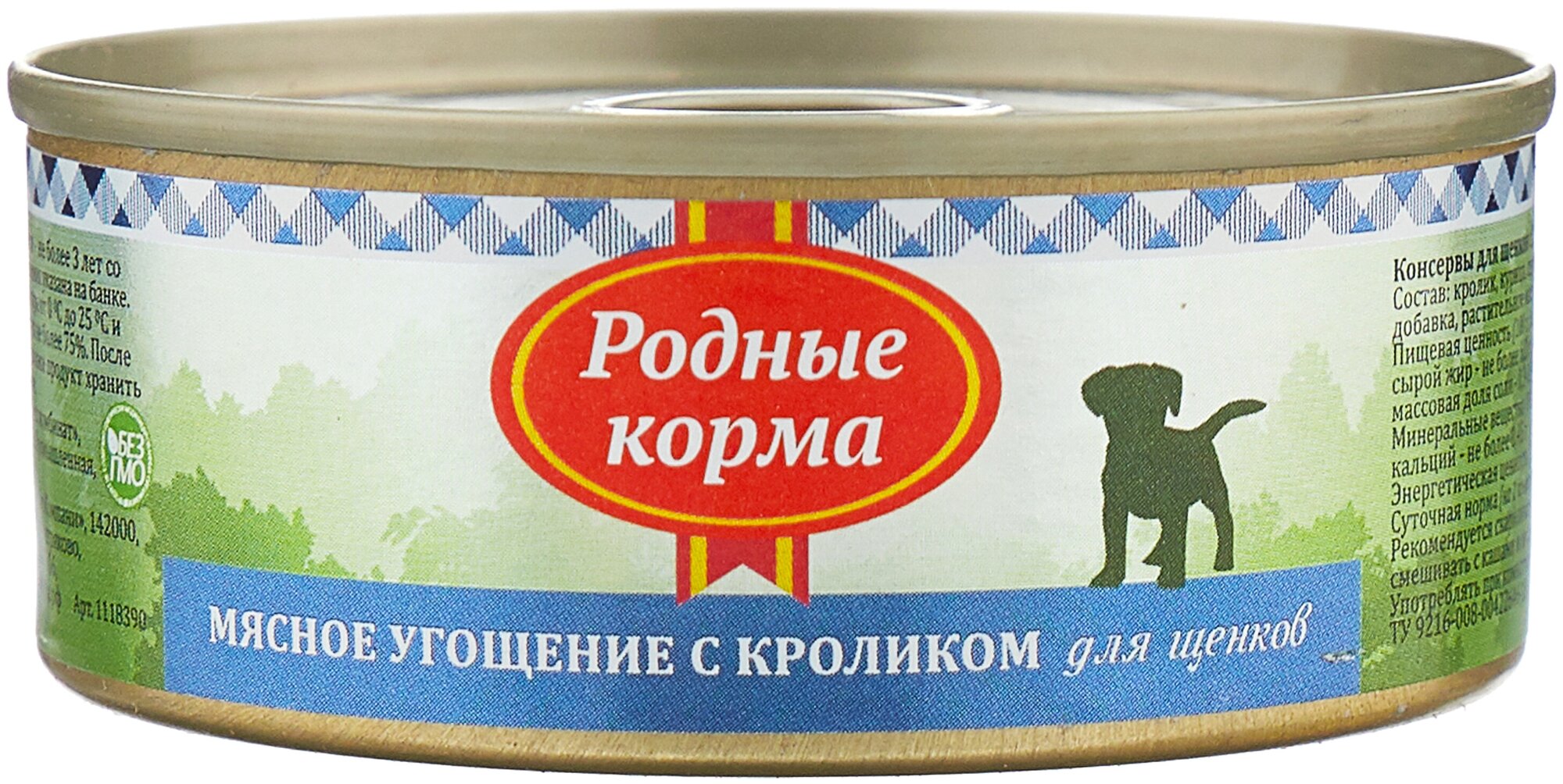 Влажный корм Родные корма Мясное угощение для щенков кролик 340г кролик 340 г, 12 шт