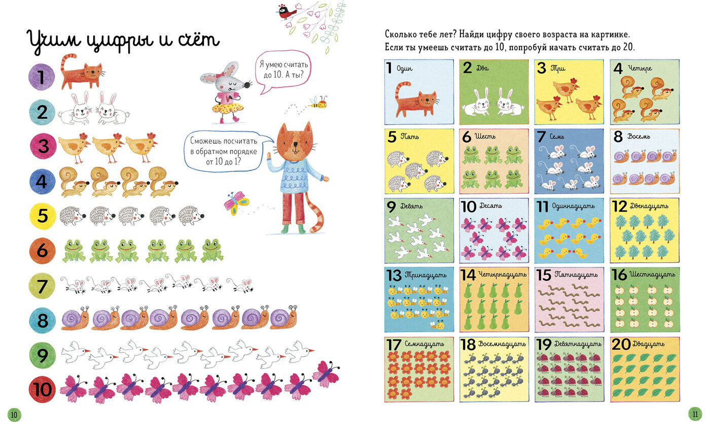 В этой красочной книге есть всё, что нужно знать первокласснику. Присоединяйтесь к друзьям, которые недавно пошли в школу, и узнайте все самые важные темы Готовимся к школе Первый день в школе Учим цвета, фигуры, цифры и противоположности Распорядок дня в школе Времена года Твоя семья Животные Наше тело Алфавит