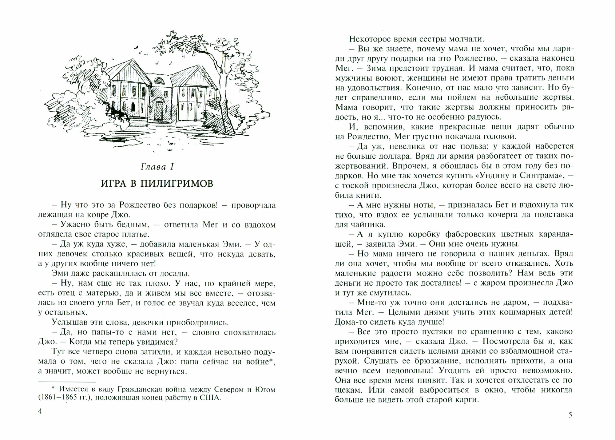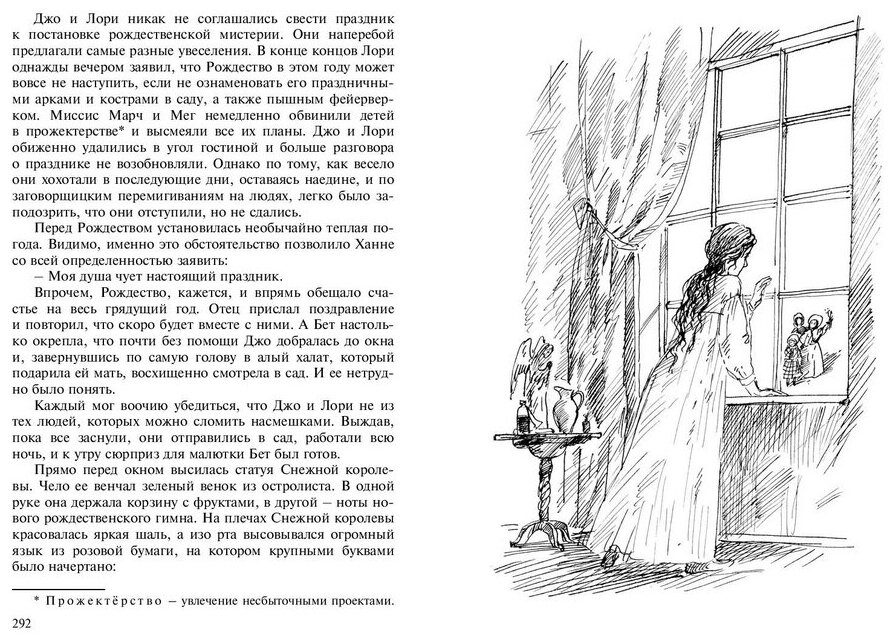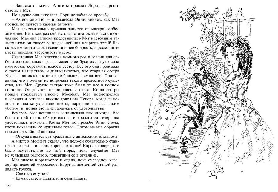 Книга была прекрасно экранизирована (с Вайноной Райдер в роли Джо)и многие современные девочки как раз после фильма захотели прочесть оригинал. Хочется сказать о том, что фильм поставлен по двум книгам серии, а я не знала об этом, и дочь была разочарована тем, что финал книги обрывается на полуслове. Обратите на это внимание, приобретая книгу для своих девочек. Но книга более глубокое, яркое и интеллектуальное произведение, нежели фильм, если вообще их можно сравнивать. Поэтому для современного ребенка потребуется участие мамы в осмыслении текста. Все-таки, это серьезная литература, хоть и адаптированная.