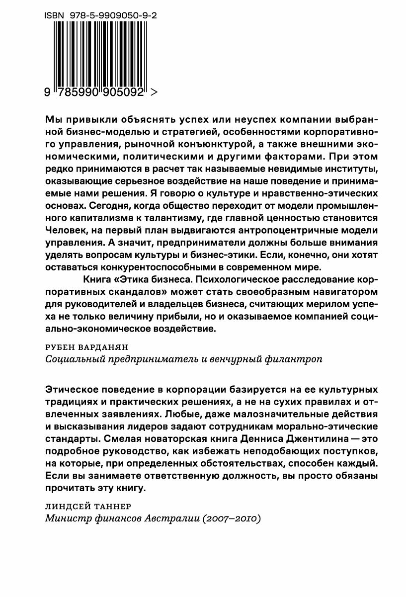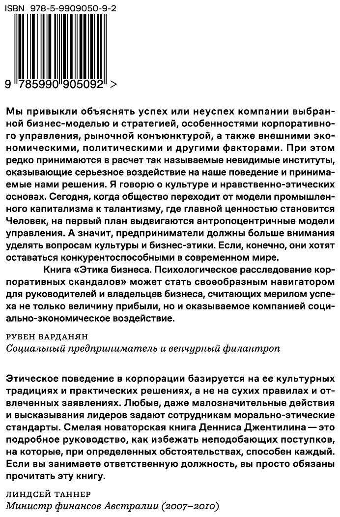 Книга важна руководителям высшего звена и рядовым сотрудникам организации, а также всем, кого интересуют этические и психологические аспекты бизнеса.
