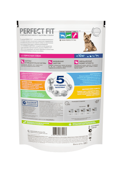 | Рекомендации | При переходе на корм Perfect Fit™ с курицей для взрослых собак мелких и миниатюрных пород старше одного года, постепенно вводите его в рацион собаки в течение 4 дней. Мы рекомендуем кормить вашу собаку 2 раза в день. Разделите суточную норму, указанную в таблице на упаковке, на количество кормлений в день. Придерживайтесь рекомендуемых норм кормления, однако индивидуальная норма кормления вашей собаки зависит от ее возраста, условий содержания, темперамента и активности. Ваша собака постоянно должна иметь достаточно чистой и свежей воды для питья. Корм полнорационный и сбалансированный, поэтому не требуется добавление витаминов или минералов дополнительно в рацион собаки. |
