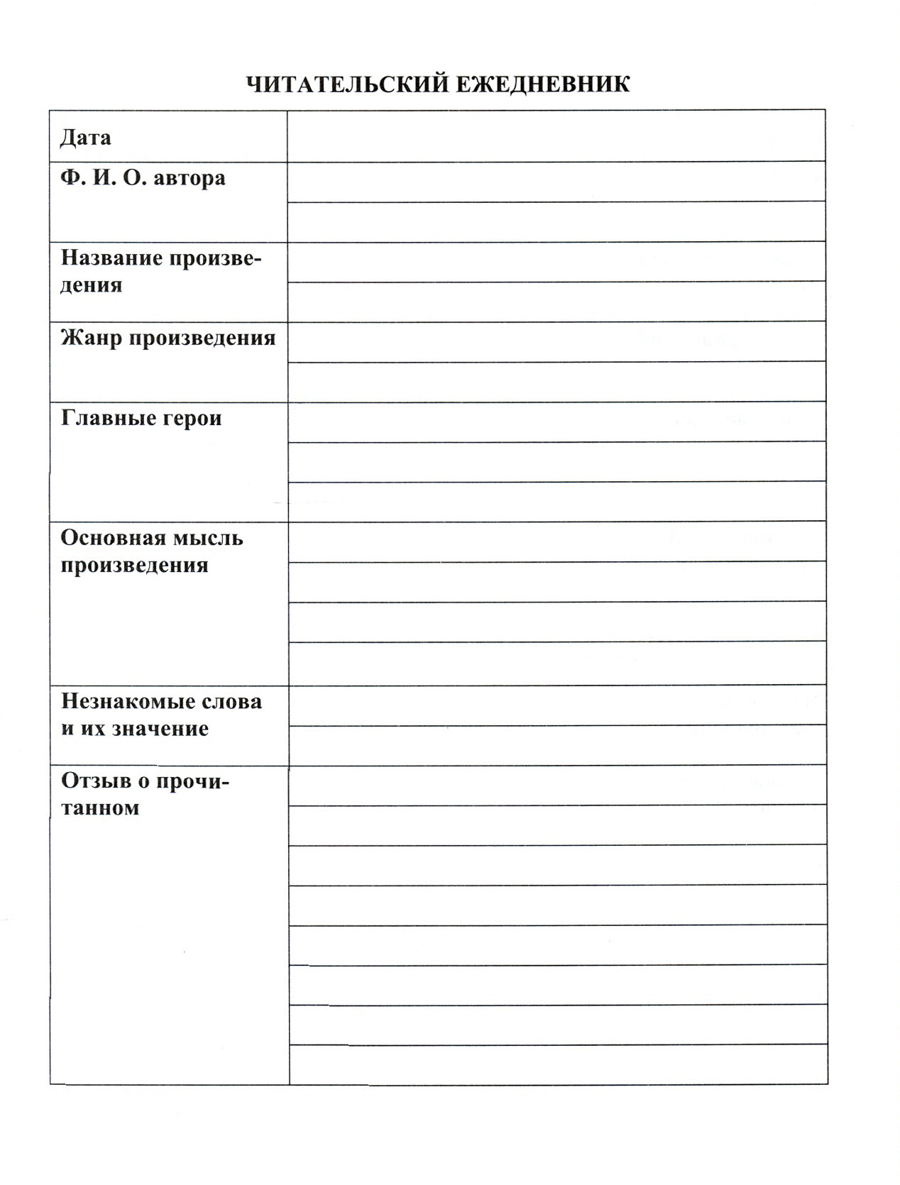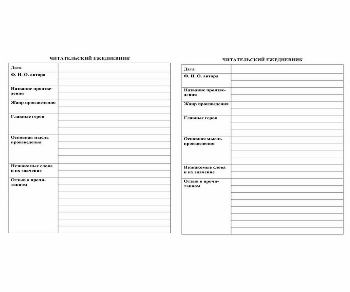 | Тип | читательский дневник |