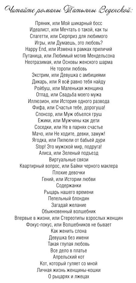 | Серия | Жизнь прекрасна. Позитивная проза Татьяны Веденской |