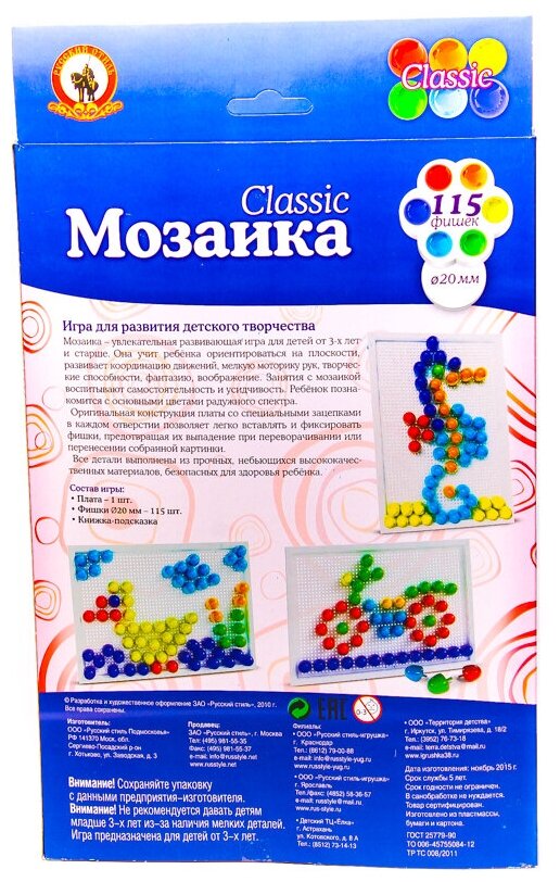 | Состав набора | игровое поле, 115 элементов, инструкция |