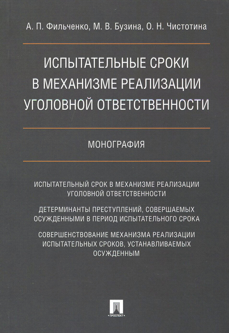 Испытательные сроки в механизме реализации уголовной ответственности (Фильченко Андрей Петрович, Бузина Марина Викторовна, Чистотина Ольга Николаевна); Проспект, 2018