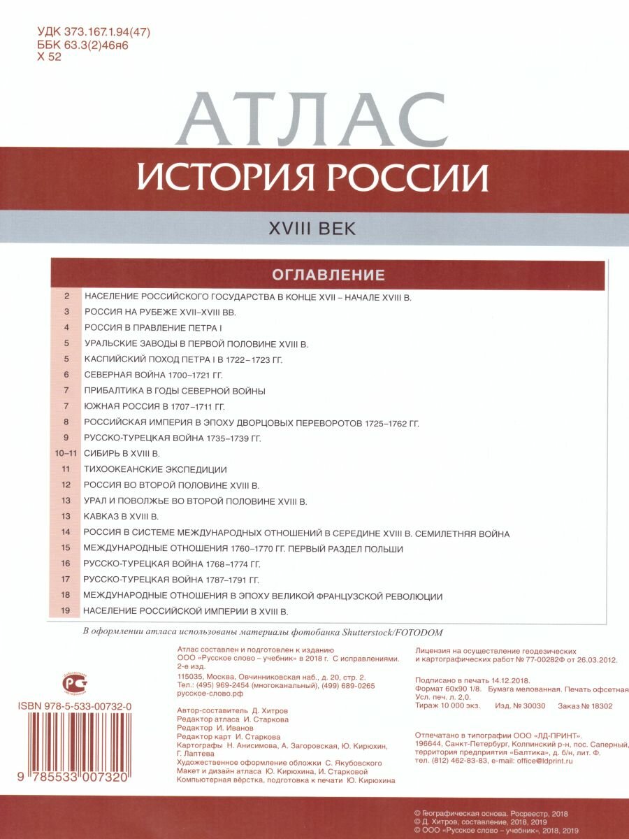 История России. XVIII век. 8 класс. Атлас (без автора); Русское слово, 2018
