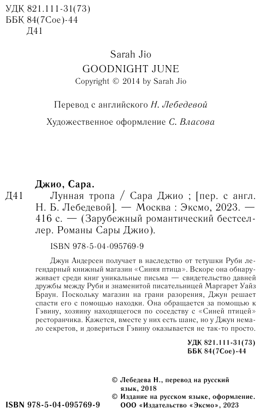 На сегодняшний день товар «Книга: Лунная тропа (Сара Джио); ООО "Издательство "Эксмо", 2024» можно купить с кешбеком в 4 магазинах: book24, Буквоед, Яндекс.Маркет, Читай-город