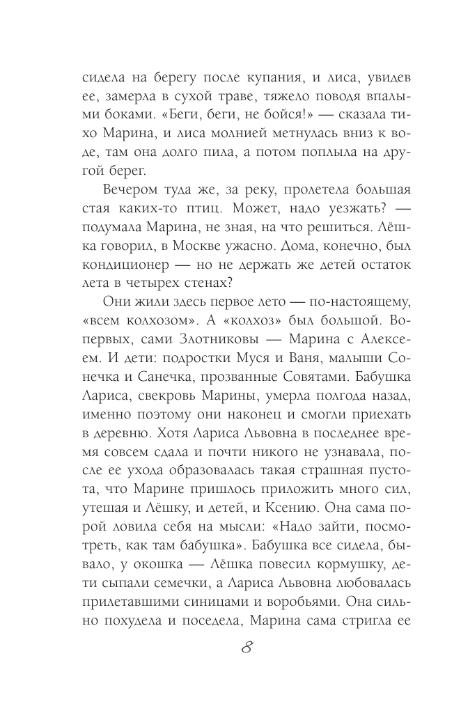 Третья книга саги «Круги по воде» - Омуты и отмели. Здесь тоже пришлось ввести в ткань повествования «краткое содержание предыдущих серий». В этом романе на сцену выходит молодое поколение Злотниковых, а Марина с Алексеем переживают очередной семейный кризис. Марина узнает историю своих родителей и понимает, зачем ей даны ее необычные способности.