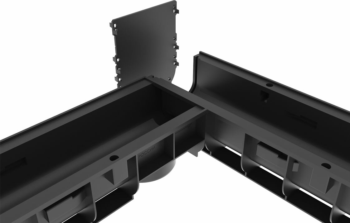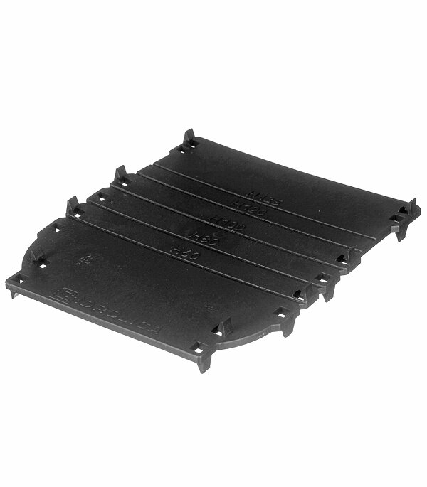 - В заглушке предусмотрены выемки для среза, которые позволяют устанавливать ее в лотки различной высоты.