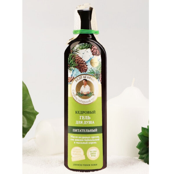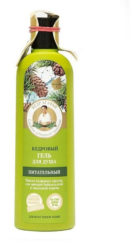 Кедровый гель для душа очищает и насыщает кожу питательными веществами, предотвращая сухость и шелушение, дарит длительное ощущение нежности и комфорта. Масло сибирского кедра – богатый источник витамина Е и полиненасыщенных жирных кислот, эффективно питает кожу, делая ее мягкой и ухоженной. Белый сибирский лен и сок шикши байкальской насыщает кожу микроэлементами и витаминами, восстанавливает её, придавая упругость и эластичность. Мыльный корень — натуральная, хорошо пенящаяся основа, которая эффективно очищает и не сушит кожу.