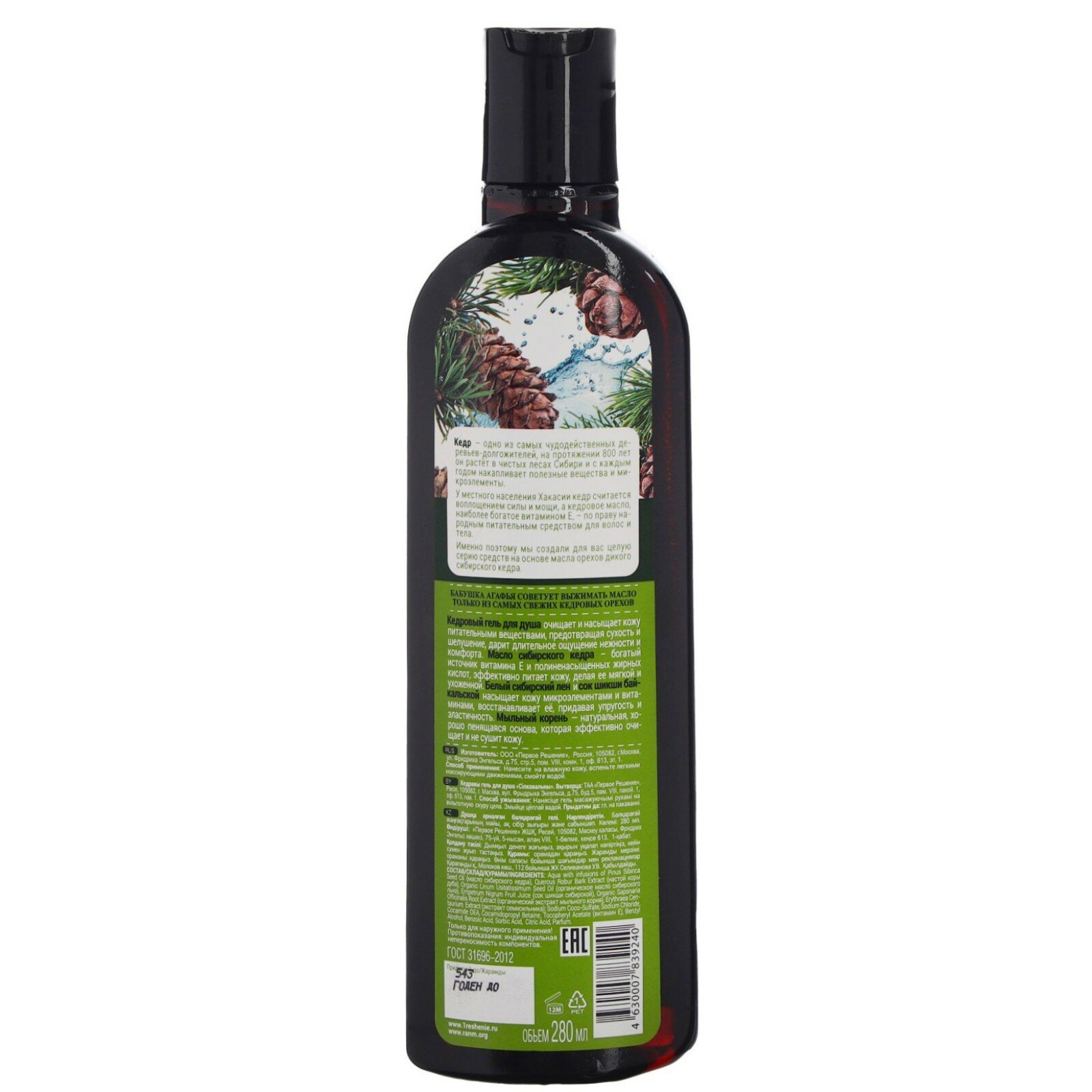 | Состав | aqua with infusions of pinus sibirica seed oil (масло сибирского кедра), quercus robur bark extract (настой коры дуба), organic linum usitatissimum seed oil (органическое масло сибирского льна), empetrum nigrum fruit juice (сок шикши сибирской), organic saponaria officinalis root extract (органический экстракт мыльного корня), erythraea centaurium extract (экстракт семисильника), sodium coco-sulfate |