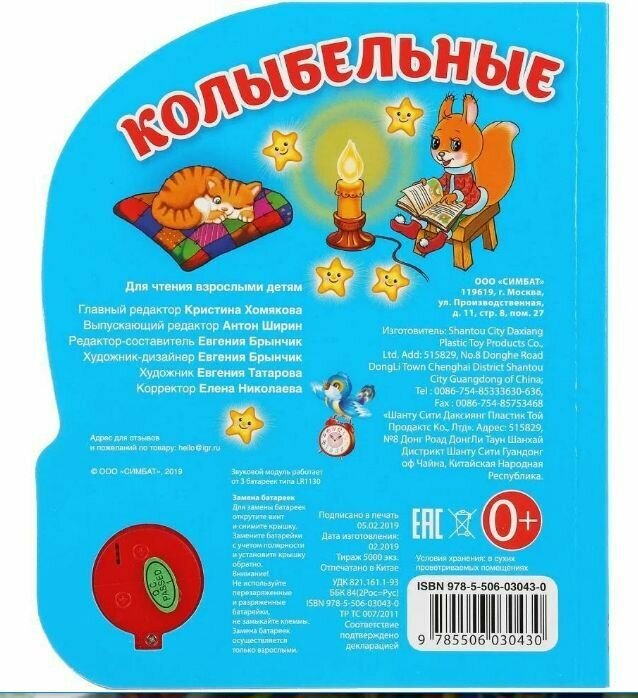 Сервис сравнения цен СкидкаГИД предлагает сравнить цены на товар «Книга: Колыбельные. Книжка с музыкальным блоком (Татарова Евгения (иллюстратор), Хомякова Кристина (редактор), Брынчик Евгения (составитель)); Умка, 2018»