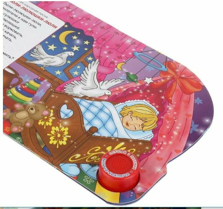 Я заказывала книжку в интернет магазине, поэтому не имела возможности послушать мелодии. Когда она приехала, я была в ужасе. Какие-то хриплые голоса будут петь моему ребенку колыбельные, жуть.