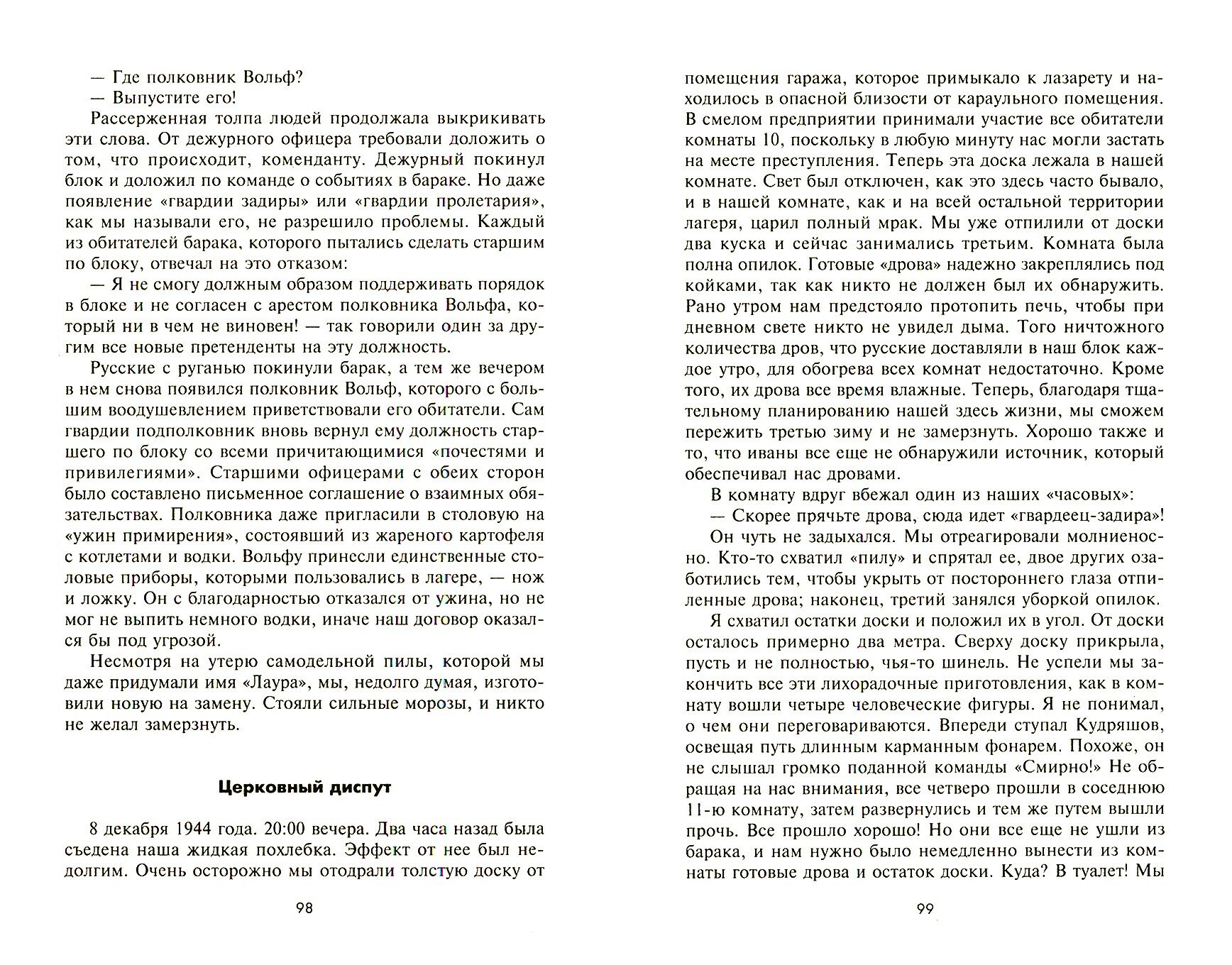 Капитан вермахта Эдельберт Холль, командир пехотной роты, рассказывает о том, как сложилась его судьба после окружения под Сталинградом зимой 1943 года. Основываясь на личных записях, которые автор вел в первые годы войны и в течение семи лет плена, он живо и ярко описывает беспощадные "марши смерти" по заснеженным степям Поволжья, переправку в лагерь военнопленных в Елабуге, тяжелую эпидемию тифа, жертвами которой стали больше тысячи немецких офицеров. Капитан Холль подробно документирует суровые военные и послевоенные годы, проведенные на лесозаготовках в Прикамье и других предприятиях Советского Союза, описывает условия пересыльных тюрем, труд на строительстве железной дороги в Иркутской области - жизнь в плену, которую скрашивали лишь поддержка товарищей и надежда на возвращение домой.