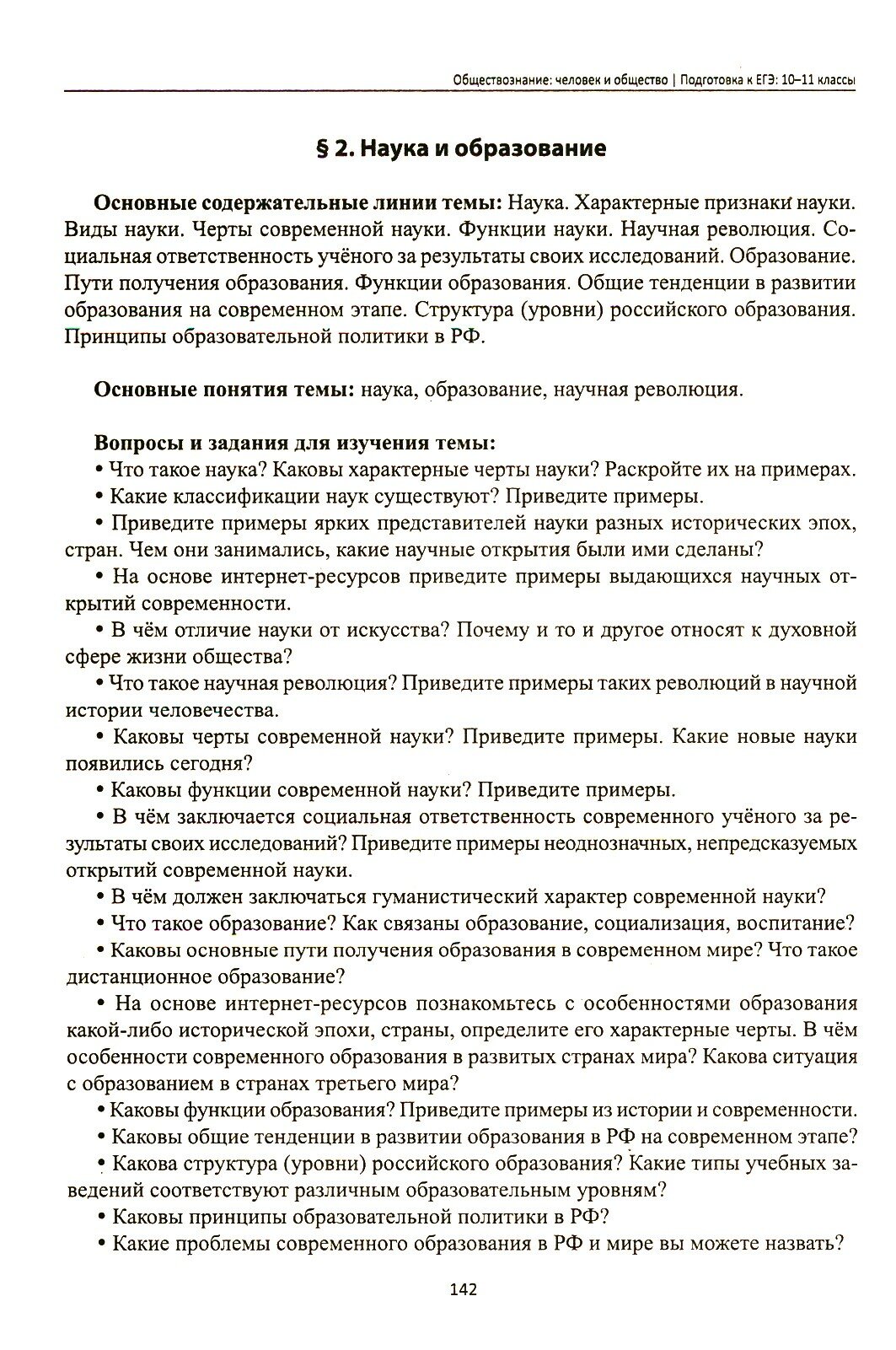 Каждый раздел состоит тематических параграфов, который включает задания в формате как ЕГЭ (письменные высокого уровня сложности - тексты, понятия, планы и т.д. + тестовые). Разделы заканчиваются 5 тем.тестами в формате ЕГЭ (Человек, Общество, Познание, Культура).