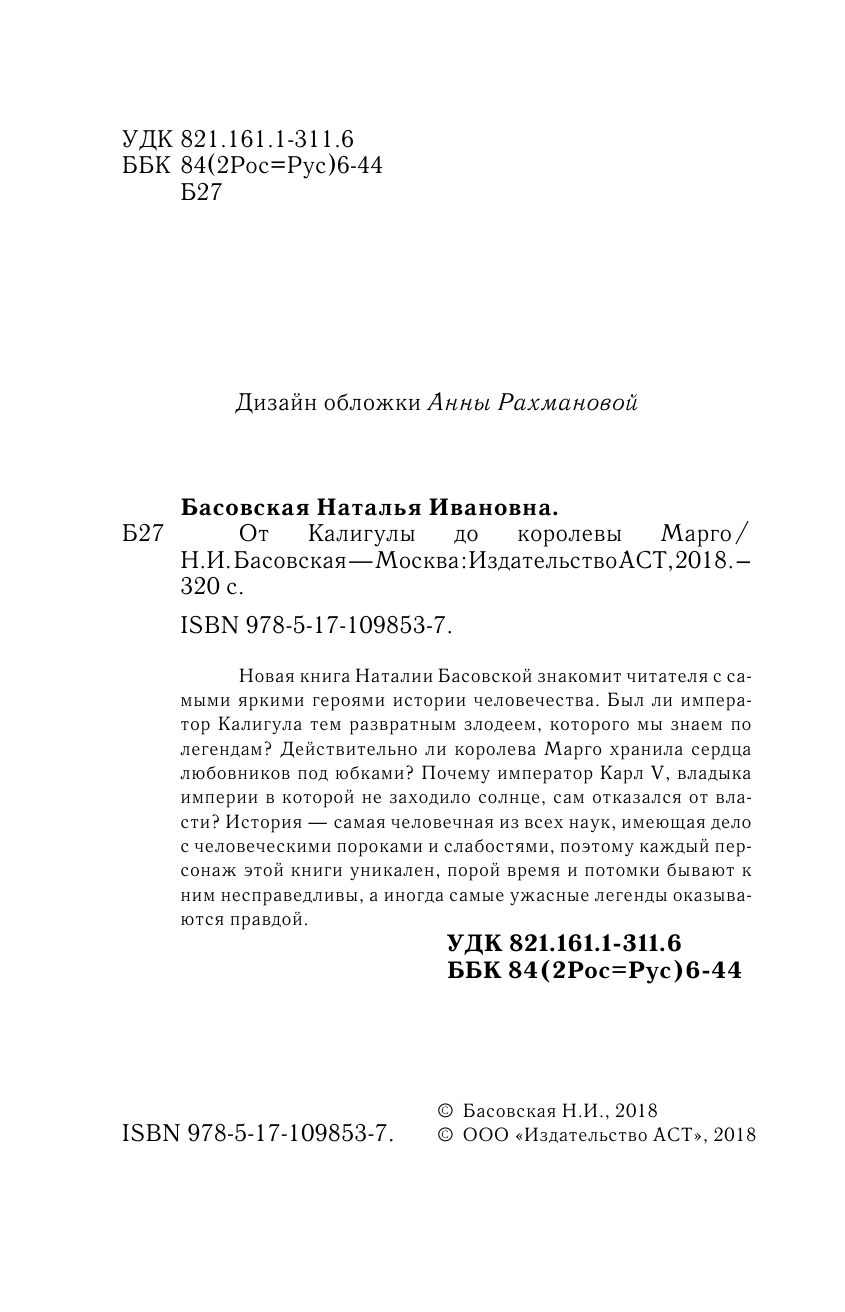 От Калигулы до королевы Марго (Наталия Басовская); Издательство АСТ, 2018