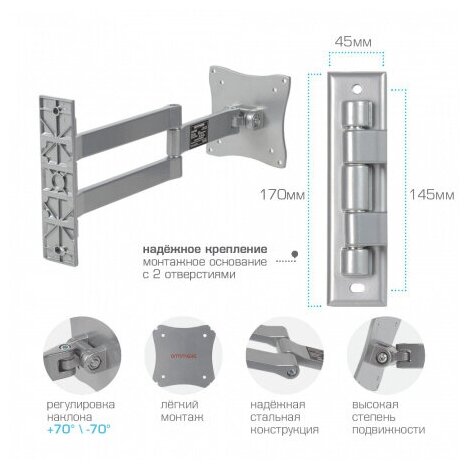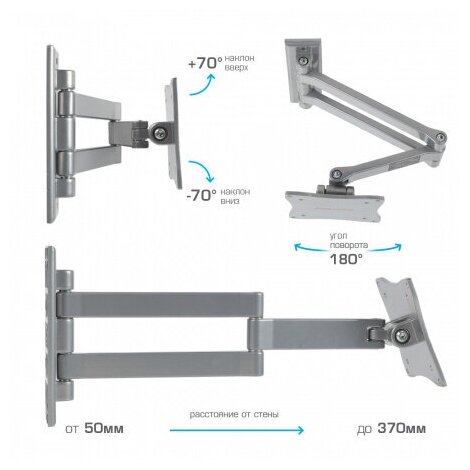 ARM MEDIA послужит великолепным решением для техники размером 10-28 дюймов. Благодаря надежной конструкции модель выдерживает до 15 кг.