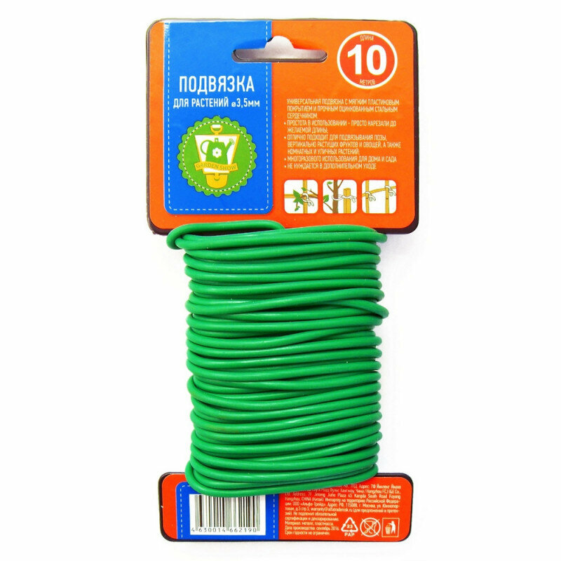 Универсальная подвязка для растений, изготовлена из оцилиндрованной стали (сердечник) и мягкого пористого пластикового покрытия. Отличается удобством и простотой использования. Легко нарезается на части нужной длины, подходит для многоразового применения.