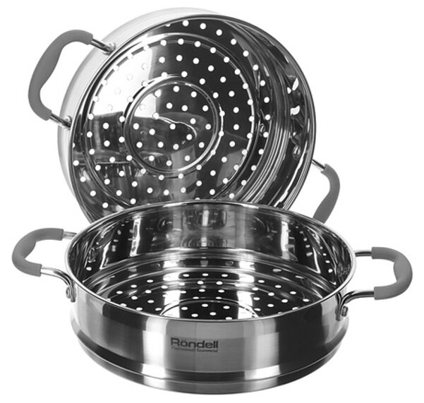 | Прочие особенности и свойства | Крышка 26 см - 1 шт. Ярусная ёмкость с перфорированным дном - 2 шт. Кастрюля 5,5 л - 1 шт. Материал:Высококачественная нержавеющая сталь 18/10 Основной цвет:Стальной Технология |